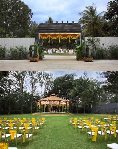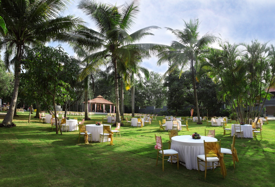 Settled away on the peaceful outskirts of Bangalore, Royalton Leisure is an elegant haven amongst the lavish canopies of eucalyptus trees. Large open green spaces, with Balinese architectural details and a serene atmosphere make it perfect for celebrations and getaways.